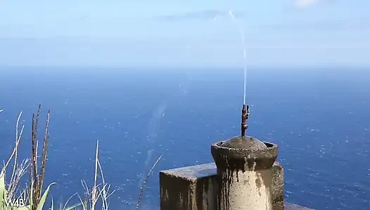 Vollbusige Vividredhead mit großen Möpsen kommt auf der Penthouse-Terrasse oben ohne